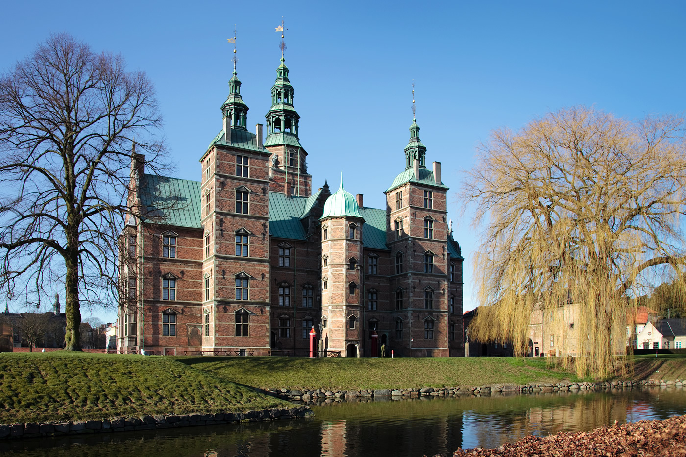 The Rosenborg Castle is built on the Castle Island surrounded by a moat. A narrow bridge leads you over the moat to the Castle Island.