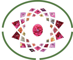 The rose garden was a present for Queen Margrethe in celebration of her 70th birthday in 2010. The design is a new version of the old rose garden which the late Queen Ingrid created in The Reserved Garden of the Palace Gardens This rose garden was inspired by the pattern on Piazza del Campidoglio in Rome, designed by Michelangelo around the year 1530. The remount roses in the garden display a firework of colors and intense scent experiences throughout the summer.